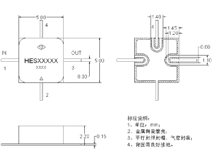 HES1149-1系列限幅器起限功率高(P-1可高達10dBm),線性度好,功率泄露平坦,漏功率低(可低至13dBm)。金屬陶瓷管殼,平行封焊,氣密封裝,表面貼裝薄膜工藝,穩定可靠,可滿足宇航應用