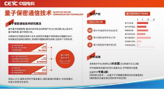 量子保密通信已創(chuàng)造多個世界紀(jì)錄,獲得獲863、973、國家自然科學(xué)基金重點(diǎn)、科技部重點(diǎn)研發(fā)計劃等30余項(xiàng)國家/省部級任務(wù)支持,自主突破了量子態(tài)制備、傳輸控制、探測、數(shù)據(jù)處理等關(guān)鍵技術(shù),申請發(fā)明專利60余項(xiàng),研制了性能指標(biāo)國際領(lǐng)先的CV-QKD系統(tǒng)(安全碼率≥7.04Mbps@25km;最遠(yuǎn)傳輸距離202.81km),研制了性能指標(biāo)國際先進(jìn)的高速小型化QRNG樣機(jī)(實(shí)時速率>7G bits/s;離線速率117G bits/s )和國內(nèi)首款量子熵源芯片。